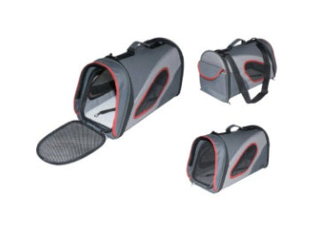 This carrier has a front door that unzips separately from its wire frame so the carrier won't cave in on your pet as they enter. The cushy pad has a removable cover for easy washing. It features both a small handle for carrying in your hand and a shoulder strap. A safety clip inside allows you to open the carrier without fear of your pet running out, and a velcro pocket on the back of the bag can hold your things or your pet's leash and treats. The shape of this carrier allows it to have a much longer length while still fitting under airline or train seats.