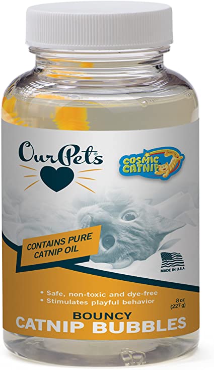 Just like regular bubbles, but with a secret ingredient that will have kitty bouncing for more! Bouncy Bubbles are made from a safe, non-toxic formula that includes pure, potent catnip oil for double the bubble-fuelled fun!