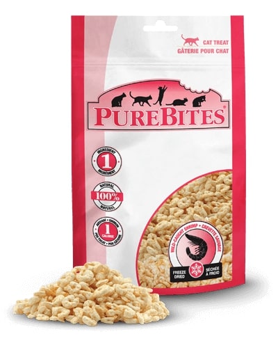 Go ahead, turn the bag around and look at our ingredients. PureBites® are made with only 1 ingredient; 100% Pure Wild-Caught Human Grade Shrimp. Cats love the taste of PureBites® because our treats are freeze dried RAW to lock in the aroma, texture and freshness they crave. Cat parents love PureBites® because our treats are 100% pure and rich in nutrients for a happy and healthy life.