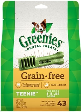 One GREENIES™ Grain Free Dental Treat is all it takes for clean teeth, fresh breath and a happy dog. Featuring potatoes, plus a delightfully chewy texture that fights plaque and tartar, your dog can't wait to sink their teeth into these grain free dog treats. Irresistibly tasty and incredibly powerful, GREENIES™ Treats for Dogs are recommended by veterinarians for at-home oral care. Best of all, these dog treats are made with highly soluble ingredients that are easy to digest. Give your dog the mouth-wowing treat that helps promote oral health with GREENIES™ Dog Treats.