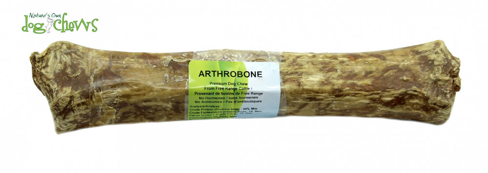 An all natural ARTHROBONE is a great chew with a purpose. It is the beef esophagus (gullet) stuffed with a beef shin bone from free range cattle. A tasty long lasting chew. No hormones or antibiotics