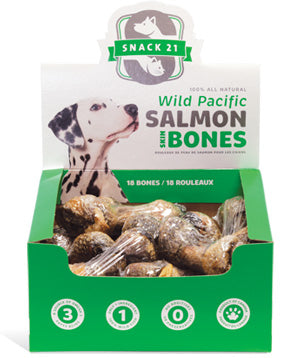 An alternative to rawhide and a natural source of Omega-3 fatty acids with no digestion issues. Made of 100% dried Wild Pacific Salmon skin, the chews contain no additives, preservatives, colors or artificial flavours and are ideal for use with rubber treat toys.