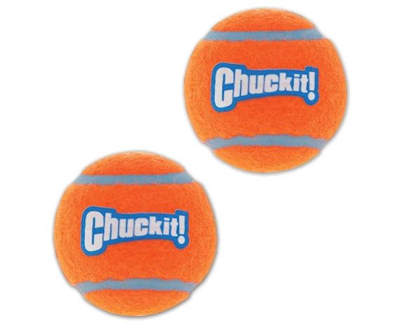 Chuckit!® Tennis Balls are made of high-quality materials and specifically designed for the game of fetch. Constructed of natural rubber it features an extra-thick rubber core and durable material that floats in water. The bright colors provide improved visibility when playing with your dog and help to prevent the ball from being lost. Use alone, or with your Chuckit! Launcher (sold separately).