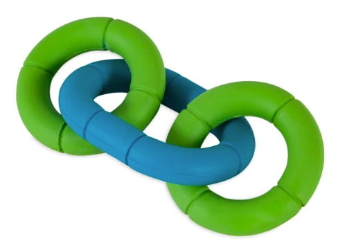 JW® Invincible Chains® provides your dog with the rubber texture he loves to chew on. Solid, no glue construction stands up to the abuse. A terrific tug as well - easy to hold on to while your dog tugs with all his or her might. Enjoy a game of toss and tug with this unique dog toy. Features include rubber rings with rope. Durable, great for interactive play, this JW dog toy is ideal for tug and fetch. Ships in assorted colors.