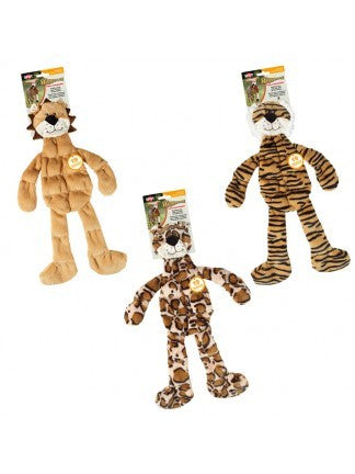 Skinneeez stuffing free toy comes with 19 squeakers that dogs love. Three assorted characters: lion, tiger and leopard.
