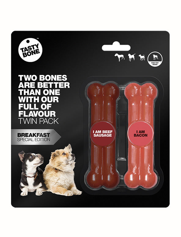 Tasty Bone Twin Pack for Toy Dogs - Breakfast Special - Bacon & Beef Sausage