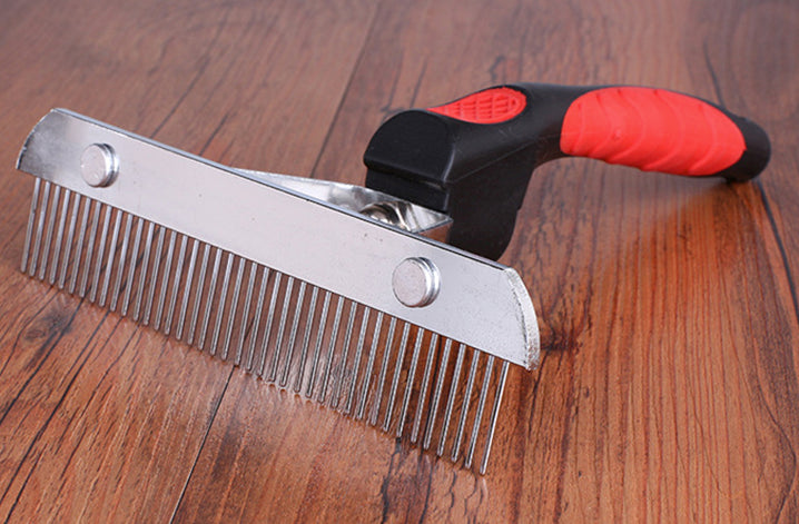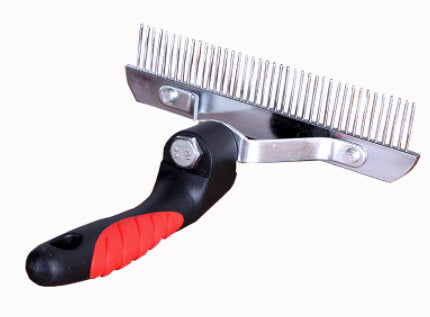 A huge rake for large breeds with thick undercoats, heavy steel construction means this rake will hold up to even the thickest or most tangled undercoats. 6" of brushing area and a thick, curved 5" handle.