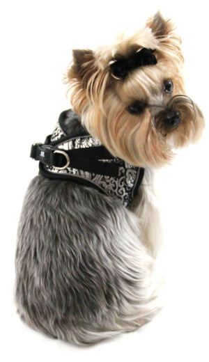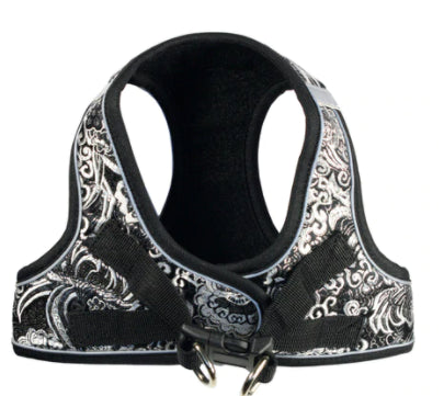 - EZ Reflective Royal Elegance Harness Vest - Black. No Choke Design Pulls on Chest, Not Neck