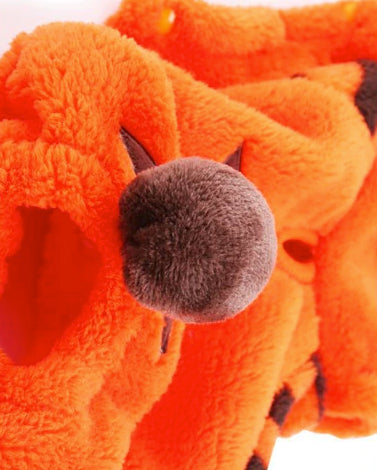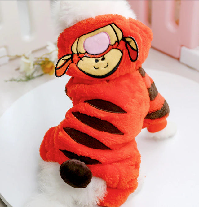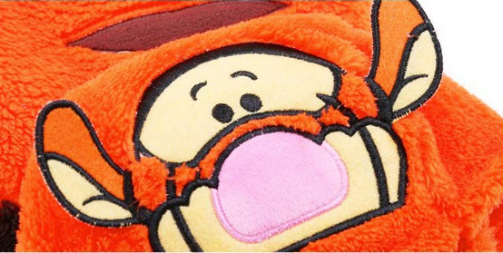 With an embroidered face, sticking out ears and an adorable pompom tail, this bright and colourful onesie looks great on many dogs. Made of thick fleece with a snap front, and even has a leash hole.