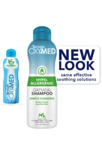 OxyMed Hypo-Allergenic Oatmeal Shampoo is a gentle cleansing solution formulated with our mild coconut cleanser for pets with allergies and sensitive skin. It is enriched with vitamin E, aloe and oatmeal to moisturize and condition the skin and coat, providing soothing relief.