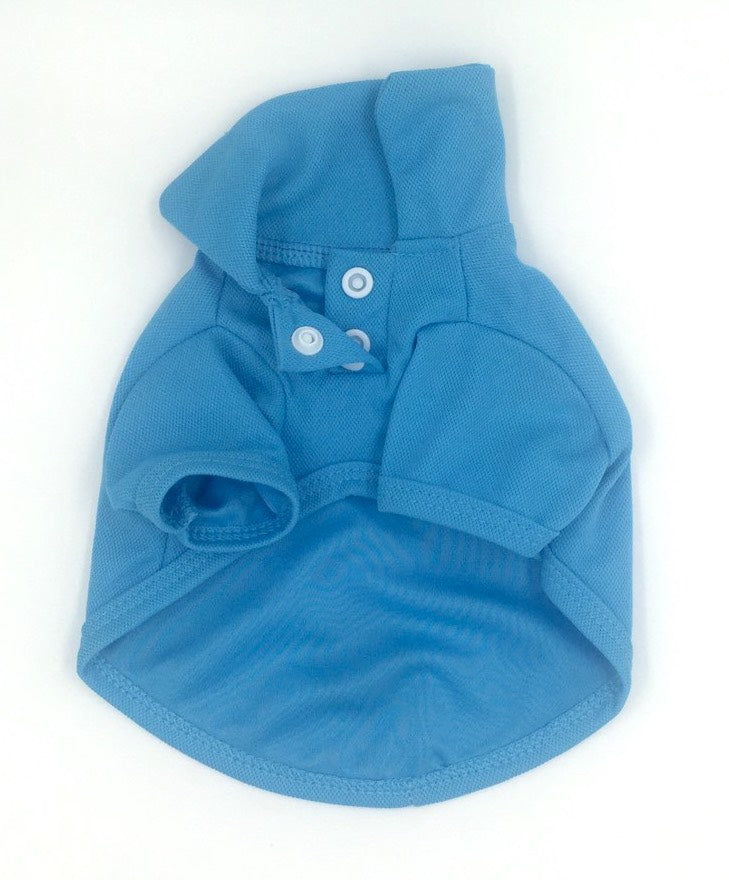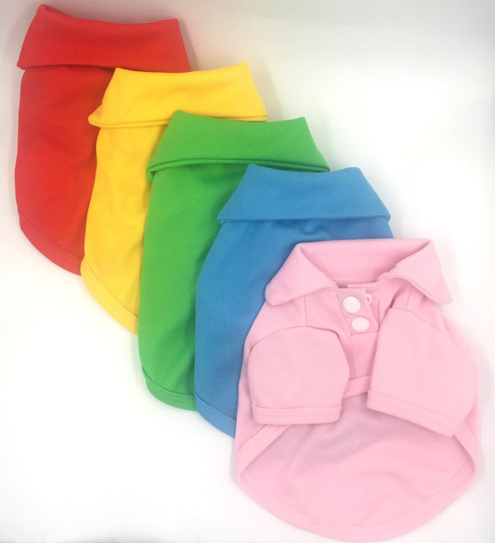 A fun basic nylon polo with two snaps at the neck. Collar can be folded up or down. This polo has t-shirt length sleeves and a roomy fit - a perfect cute summer look for a growing puppy.