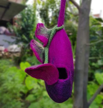 Made of premium, 100% natural wool felt and handmade respecting fair trade practices, these felt homes are great for small birds, ferrets, flying squirrels and other critters. Cocoon measures 7.5".