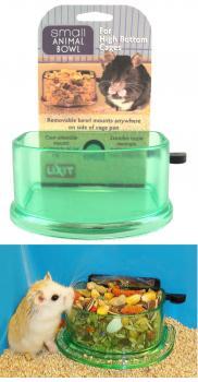 Flat-sided 3 oz crock is the perfect solution for small animal cages with high plastic-bottomed cage pans. Attaches to cage pan with heavy-duty adhesive. Quick-lock bracket releases crock easily for cleaning and filling. Mounts lower on cage than wire-mount bowls.