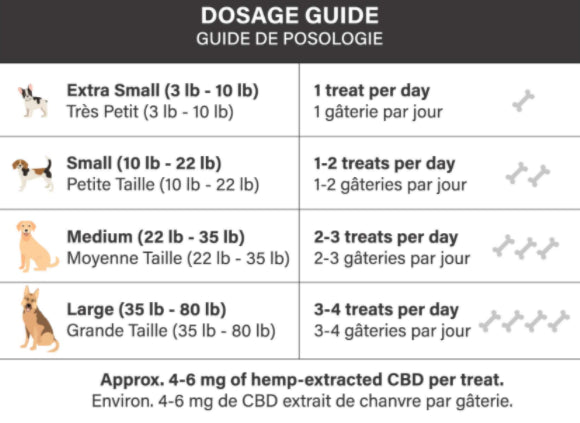 You can use our CBD treats for pets the same way as your non-CBD treats.  For dosage guidance, refer to the dosage table above or the back of the package.  If you have any questions, feel free to reach out to us via live chat or email, and always consult with a veterinary professional before using CBD products with your animal.