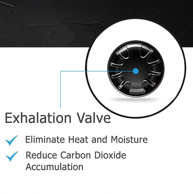 • EXHAUST VALVE: Exhalation valve helps to breathe smoothly and also to release the build-up of moisture and CO2.