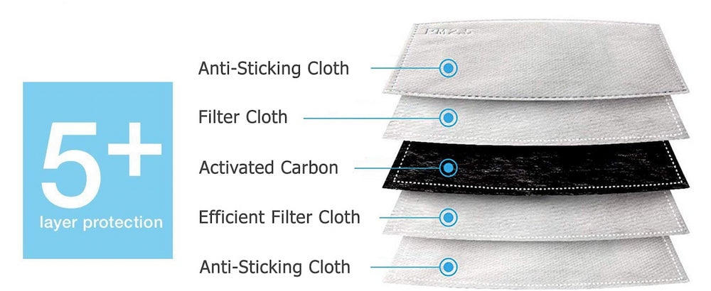 • FILTER POCKET: Interior pocket fits PM2.5 carbon filter. Makes it easy to insert extra layers such as tissue, paper towel or cotton fabric if filters are not available.