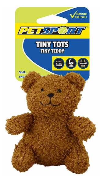 Tiny Tots Tiny Teddy is a durable, but super soft dog toy made for small dogs. Tiny Teddy is the best cure for a bored pet that loves to play, like puppies or even seniors who act like a puppy.
