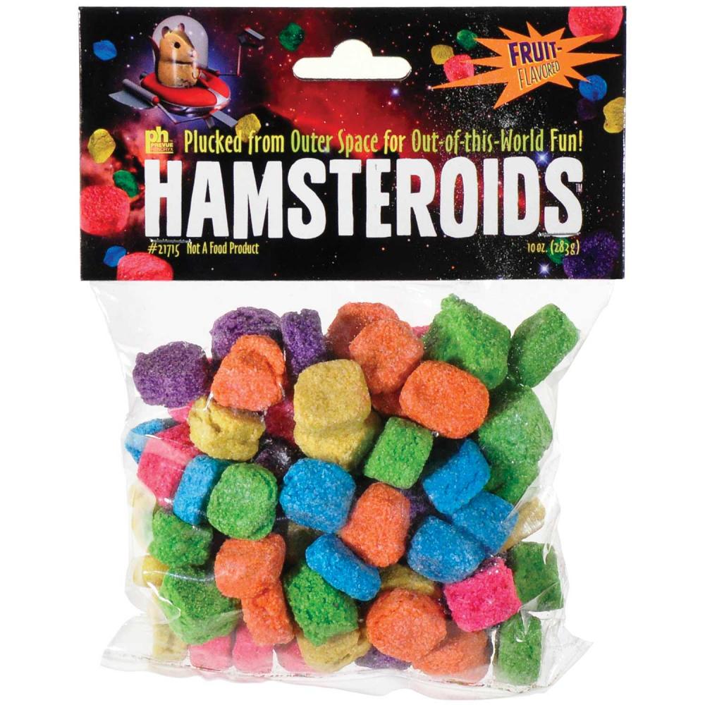 Prevue Pet hamsteroid mineral chew toys are made of 100-percent ground natural calcium to aid in manicuring teeth and groom nails as they chew. Fruit scented balls of natural ground seashells and limestone. Designed to be destroyed by hamsters, mice, gerbils, rats and guinea pigs. A nutritional supplement will help keep teeth ground down.