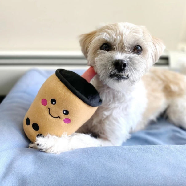 If Boba is your favourite drink, now it can also be your pet's favourite plush toy and you can tea break together! Boba milk tea has iconic boba pearls at the bottom and a jumbo straw to suck them up!